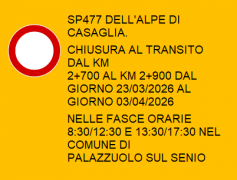 SP477 DELL'ALPE DI CASAGLIA. CHIUSURA AL TRANSITO DAL KM. 2+700 AL KM. 2+900 DAL GIORNO 23/...Menu della Mensa Scolastica - APRILE 2026